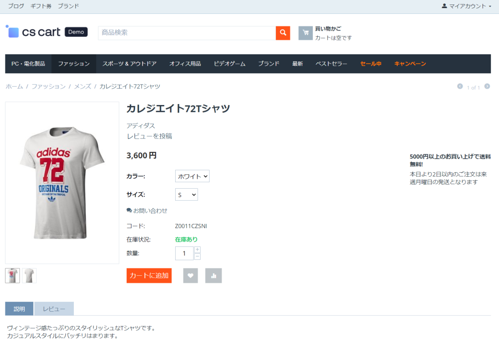 「オプション」を使用すると、商品のカラーやサイズを管理できます。
