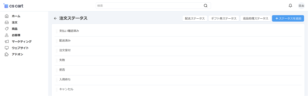 受注したデータは、それぞれの注文ステータスを使って管理します。