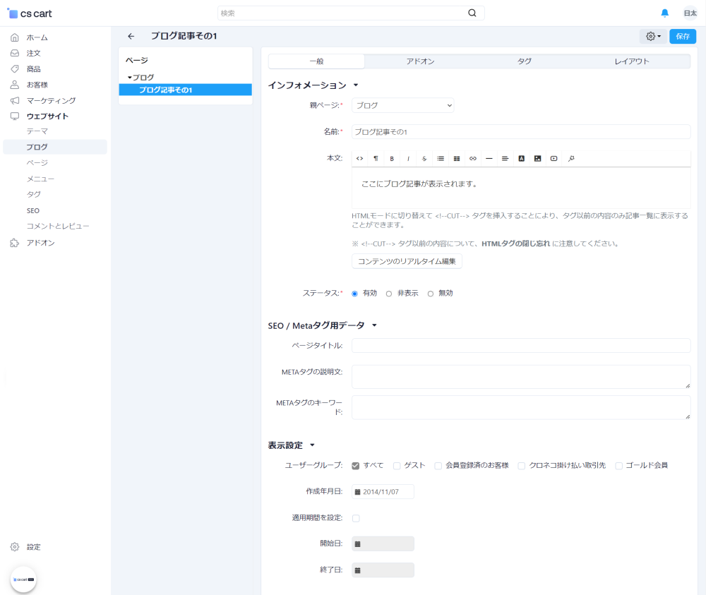 公開期間の指定もできるので、キャンペーン等の期間限定のページの設定もできます。