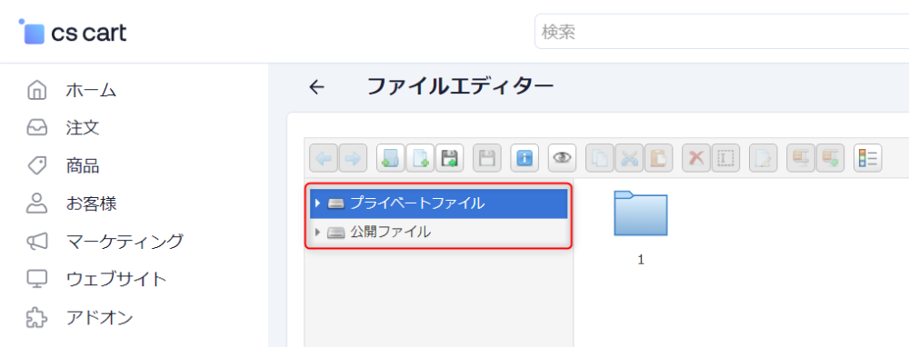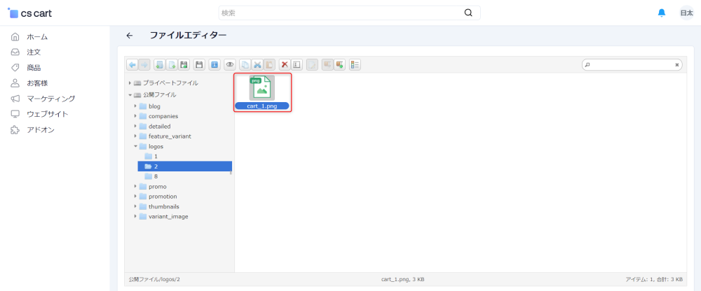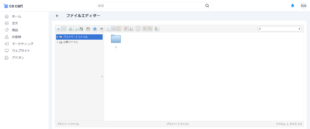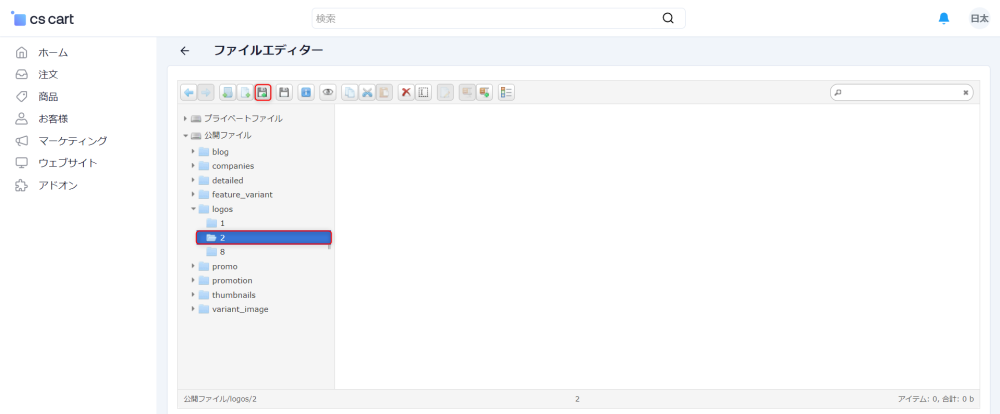 「ファイルエディター」は商品登録ページの商品画像セクションや、WYSIWYGエディタの画像挿入ボタンなどで、挿入可能となるファイルを管理するメニューです。