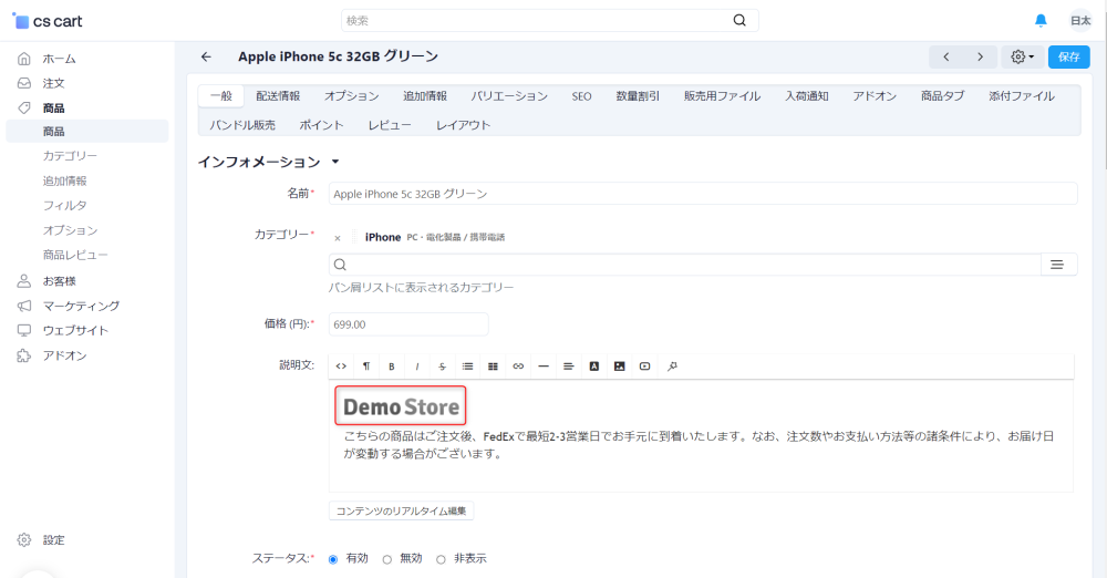 ここでは、商品登録ページの説明文中に挿入します。