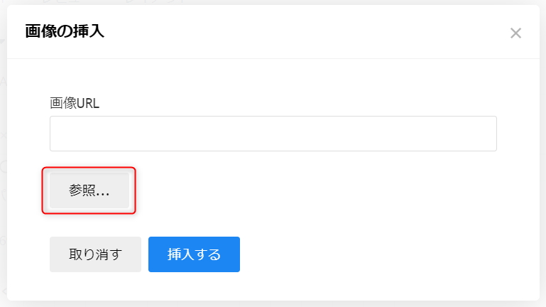 ③…ファイルアップロードボタン(画像ファイルなど、ローカルからのアップロードとなります)