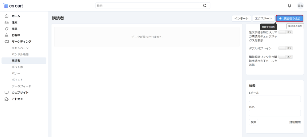 新しい購読者は画面右上の「購読者の追加」ボタンから追加できます。