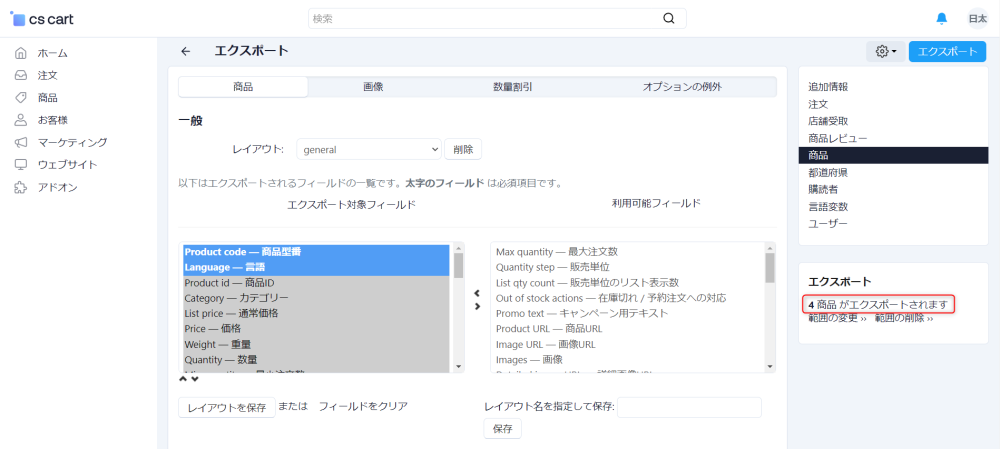 商品のエクスポート