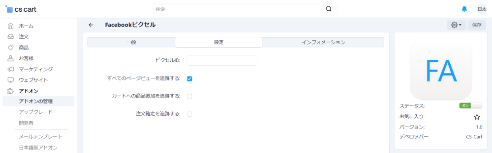 CS-Cart でFacebookピクセルを利用可能にします。