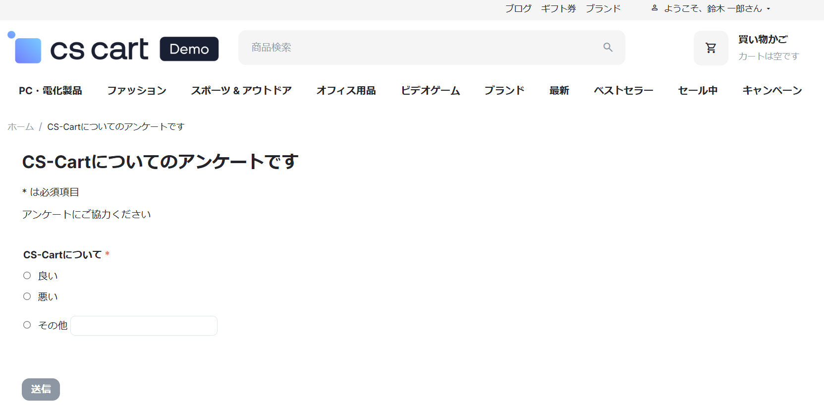 アンケートアドオンは、ショップフロントにおいて、お客様にアンケート(投票)機能を提供します。