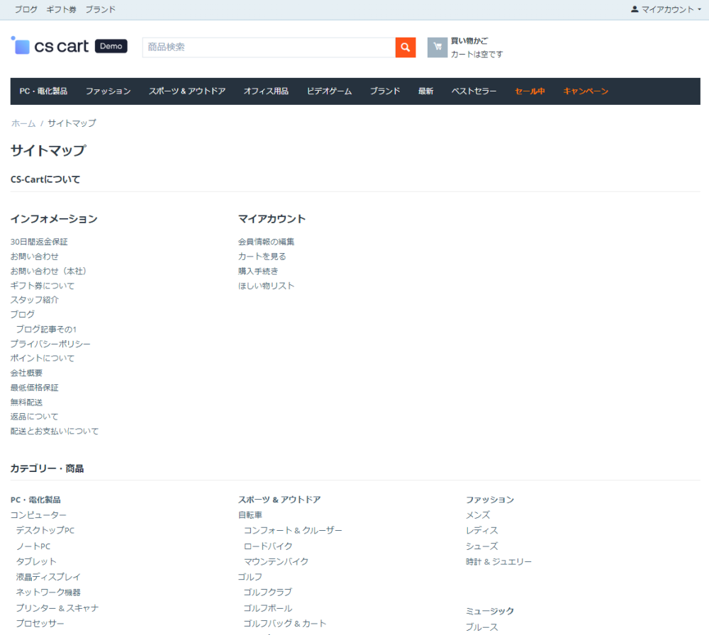 CS-Cartではサイトマップは自動生成され、次のURLから参照できます。