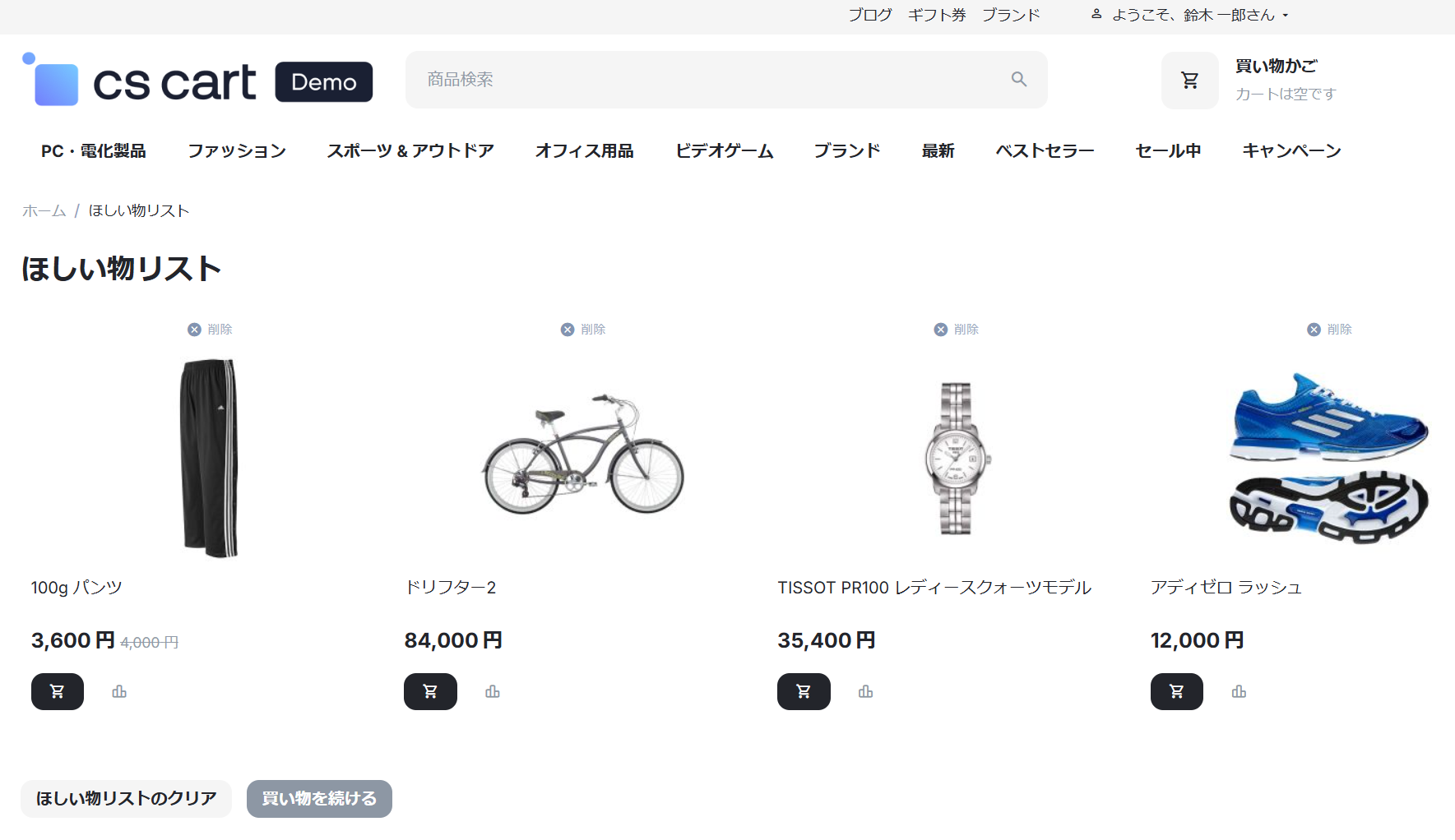 お客様はショップ内の任意の商品を「ほしい物リスト」 に登録できるようになります。
