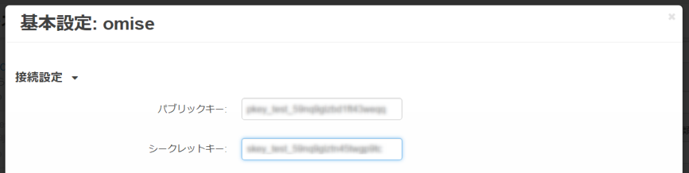 | シークレットキー | アカウント登録の際にomise様より発行されたシークレットキーを入力してください。 |