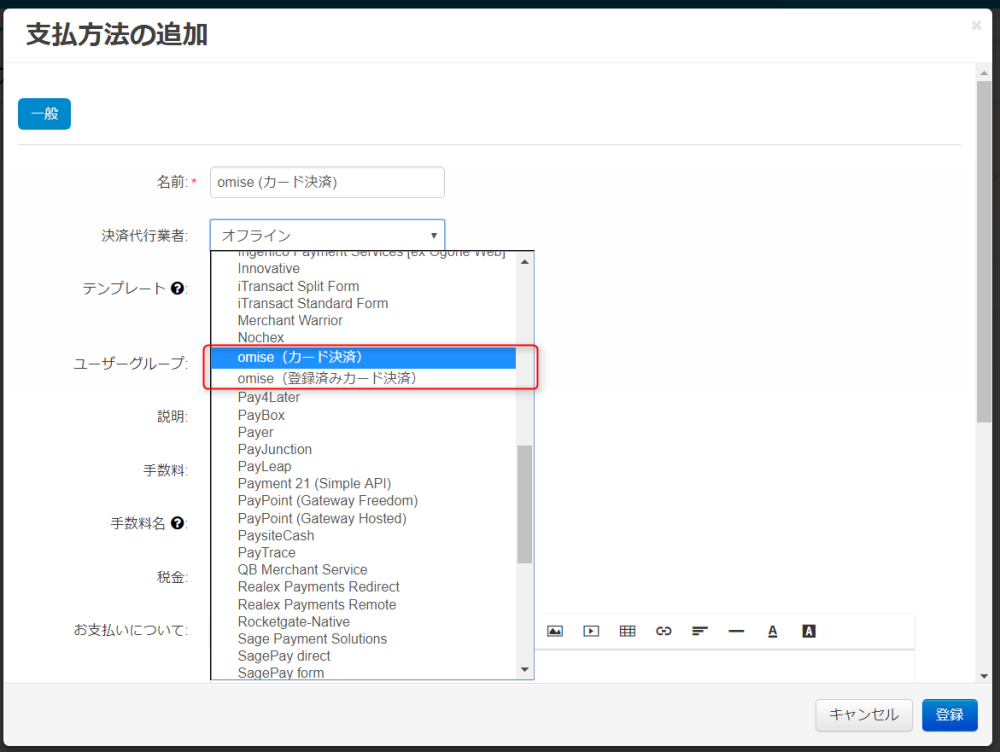ショップの決済方法に「omise(カード決済)」および「omise(登録済みカード決済)」を追加するアドオンです。