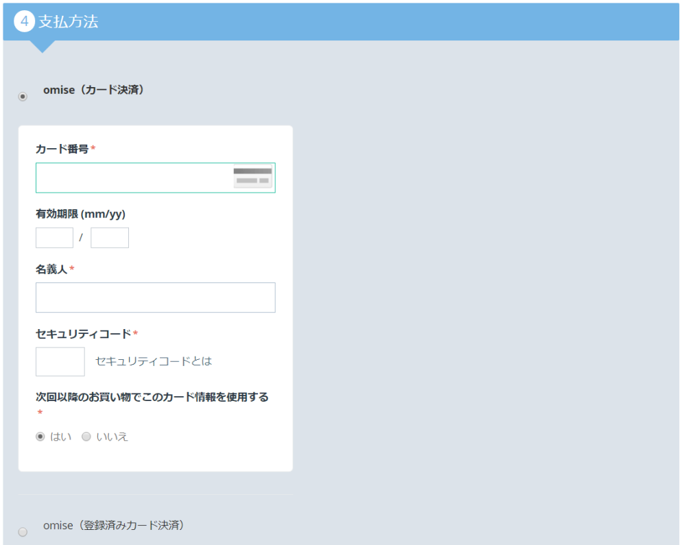 omise (登録済みカード決済)